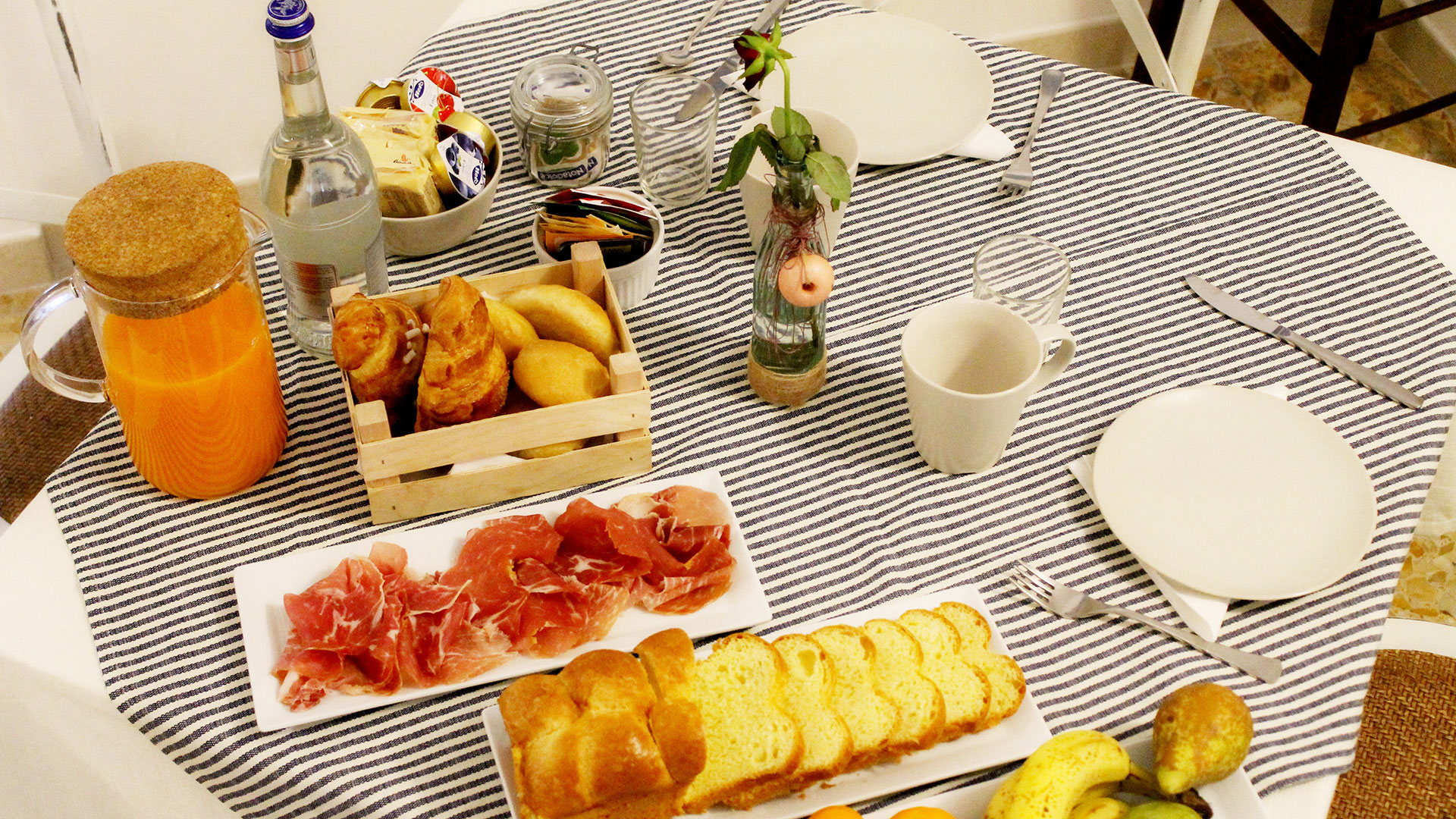 Le camere matrimoniali o doppie sono tutte dotate di bagno privato, aria condizionata, WiFi gratuito. Nella sala comune è servita al buffet una ricca colazione continentale variabile in base alle esigenze degli ospiti.