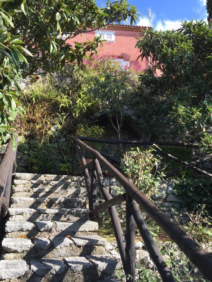 La casa è immersa nel verde di un ampio giardino attraversato da alcune rampe di scale che conducono alle terrazze panoramiche che rimangono a disposizione degli ospiti.